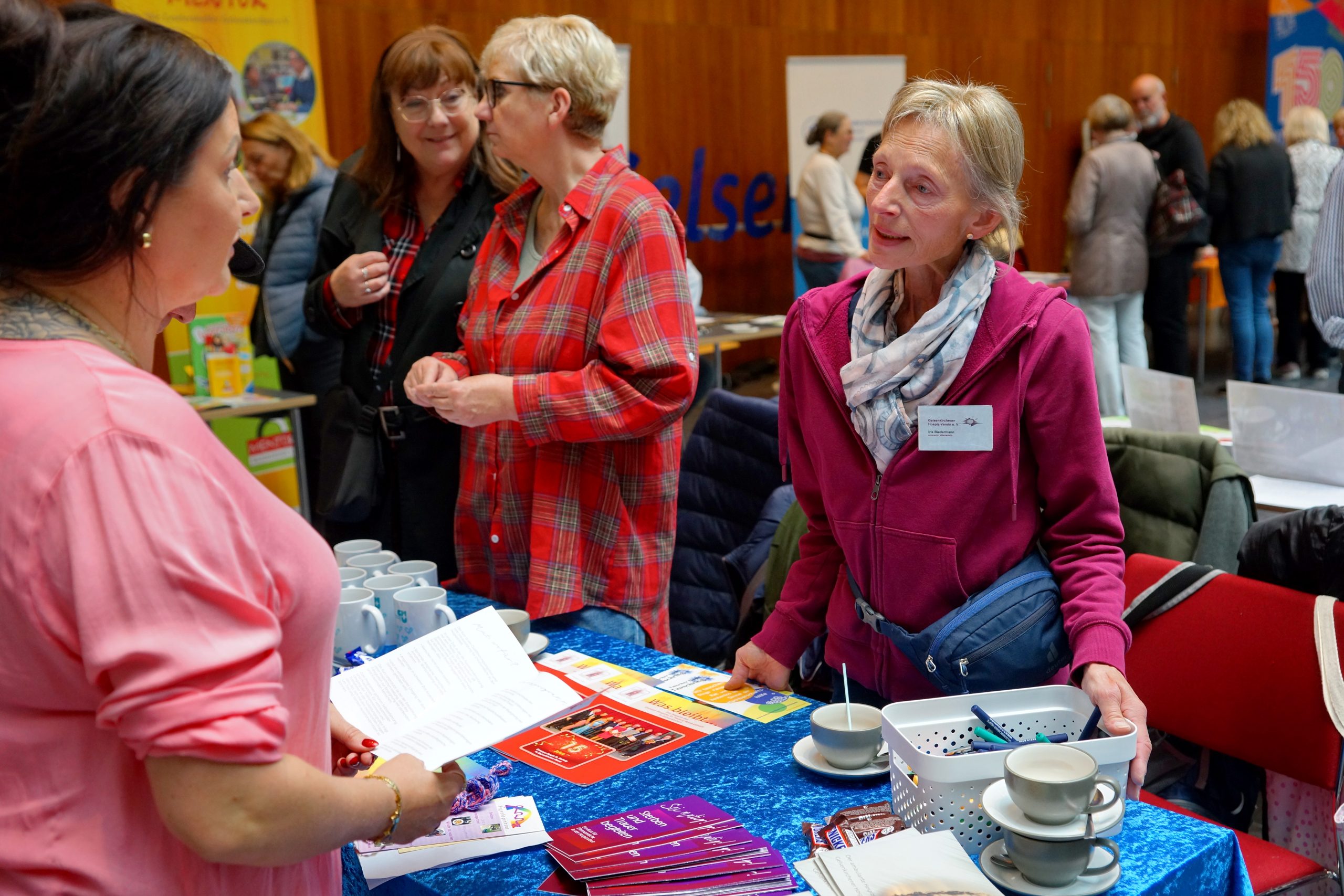 Im Gelsenkirchener Hospiz-Verein engagieren sich vor allem Ehrenamtliche. Aber in der Öffentlichkeit kennt uns längst nicht jeder. Deshalb sind wir dankbar, dass wir unsere Arbeit und das Engagement des Vereins bei der Ehrenamtsbörse am 11. Oktober im Hans-Sachs-Haus vorstellen durften. Es gab viele gute Gespräche mit Menschen, die sich immer schon einmal den Themen „Hospiz“ und „Sterben“ nähern wollten. Dieser Austausch war wertvoll. Wir haben voneinander gehört von den persönlichen Einstellungen und Erfahrungen mit dem Ehrenamt, aber auch wir konnten unsere Begeisterung für die Hospizarbeit zeigen und hoffentlich auch weitergeben. Unsere Flyer und Broschüren wurden gerne mitgenommen. Mal abwarten, wer sich für die Mitarbeit bei uns entscheidet und sich zum neuen Ausbildungskurs im Januar 2025 anmeldet.