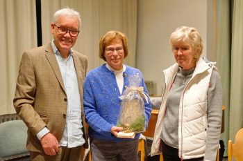 ebet und Segen die Moderation wieder auf. Er verabschiedete Christa Bogacki, die zum Jahresende in den wohlverdienten Ruhestand geht, mit anerkennenden Worten, guten Wünschen, einem Präsent und der Hoffnung, dass sie uns verbunden bleiben möge. Wenn jemand geht, kommt meistens ein Neuer, eine Neue. So auch bei uns. Frau Tatjana Pöge wird ab Januar 2025 die Nachfolgerin von Christa Bogacki. Sie stellte sich vor und freut sich auf die Aufgaben, u. a. auch im Emmaus-Hospiz.